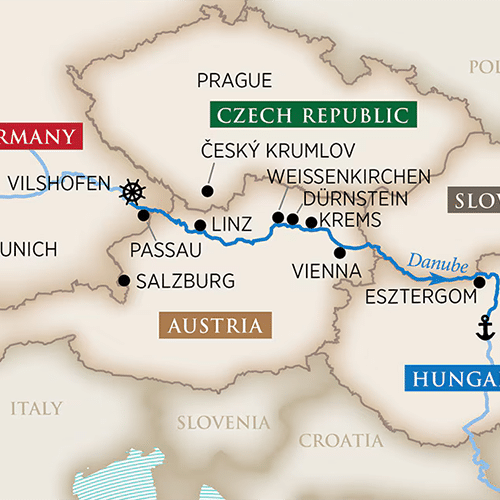 Indulge your passion for wine and history on this romantic journey along the Danube. From Germany to Hungary, you'll explore grand imperial capitals, taste world-class wines at historic estates, and sail through the picturesque Wachau Valley.