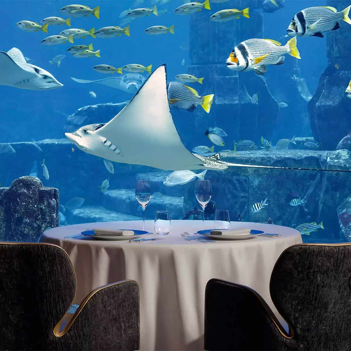 Tonight’s dinner was one for the memory books. We went to Ossiano, the underwater restaurant at Atlantis, The Palm. We descended into a dining room where one wall was a giant window into the hotel’s aquarium. Watching sharks, rays, and thousands of colourful fish glide past our table as we ate was mesmerising. The food was a work of art itself, but the surreal, peaceful atmosphere of being surrounded by marine life was the real star.