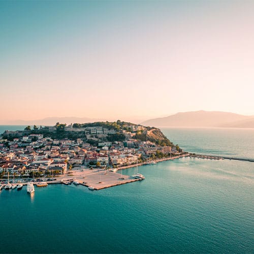 Wander the beautiful, Venetian-influenced streets of Nafplio, one of Greece’s most romantic and elegant seaside towns. As the first capital of modern Greece, its laneways are a charming blend of neoclassical mansions, Ottoman fountains, and bougainvillea-draped balconies. You can explore the formidable Palamidi fortress for stunning views of the bay and the tiny Bourtzi castle, or simply find a perfect spot at a chic café along its elegant, marble-paved waterfront for a leisurely coffee.