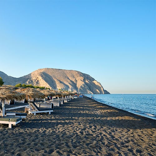 While Santorini is famous for its cliffs, the south of the island is home to unique and beautiful volcanic beaches. Visit Perissa or Perivolos, where striking black sand creates a dramatic contrast with the deep blue sea. Relax on a comfortable sun lounger at one of the chic beach clubs, enjoying cocktails and music, or take a dip in the calm, clear waters of the Aegean. It’s a completely different, more relaxed side of the island.