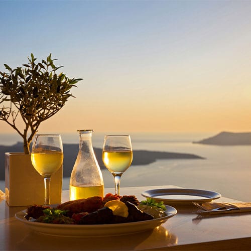 Discover the unique and celebrated wines of Santorini, whose flavours are a direct result of the island’s rich volcanic soil. The local Assyrtiko grape is world-renowned for its crisp, dry, and mineral character. Visit one of the island’s beautiful, cliff-side wineries for a guided tour and tasting, learning how the vines are coiled into baskets to protect them from the winds, and pairing the delicious wines with local cheeses and Cycladic delicacies.